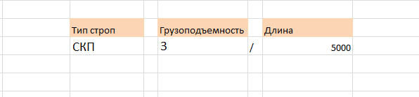 Таким образом комплектуется строп из параметров "тип стропа", "грузоподъемность" и "длина".
