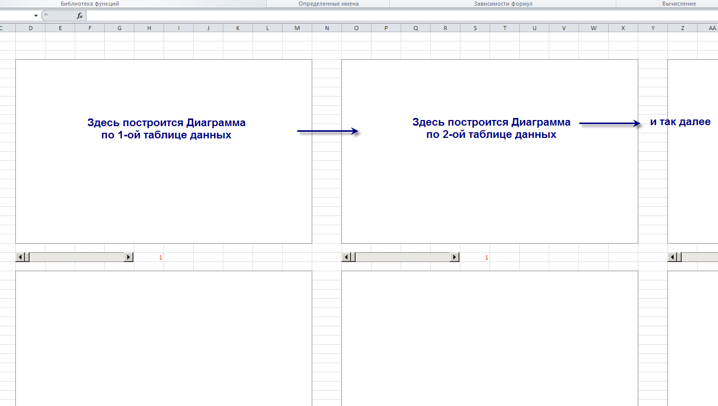 Диаграммы будут строится в цикле по 26 таблицам вот в такие ряды: