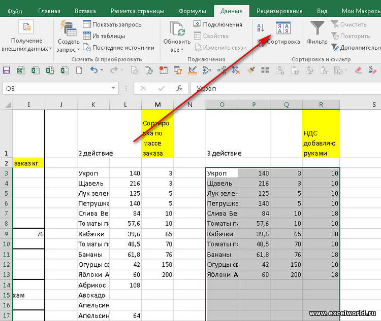 Есть несколько однотипных сортировок на вкладке "Сравнения" из сводной таблици беру данные и вписываю каждому что заказать. Когда в каждую фирму готов заказ надо несколько раз отсортировать. На вкладке "Фреш Фуд" отобразил каждый из вариантов сортировки друг за другом и подписал что сделал. Только это они на листе расположены друг за другом. В процесе работы я в одном и том же месте их сортирую без дубликации.
