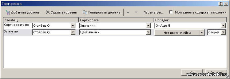 а встроенным методом сортировать не вариант?: Там можно настроить по какой очередности и что(значение, цвет...) сортировать. А главное - работает в любой книге . SLAVICK