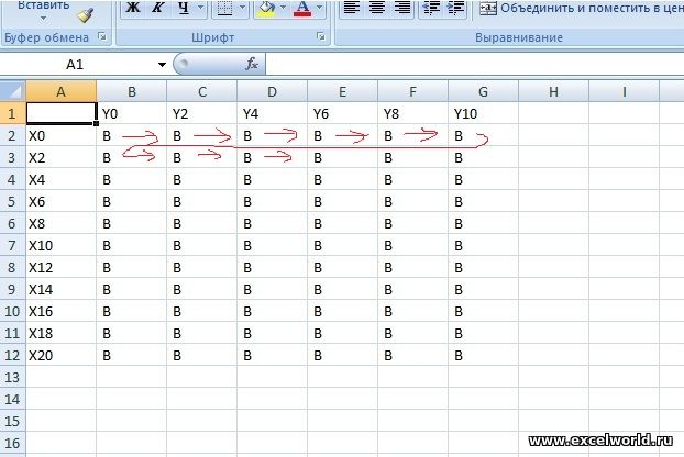 Все привет. Помогите с макросом. Имеется таблица в эксель. Символы в таблице могут быть разными, а размер почти 100 на 100 ячеек, может меньше может больше. Для примера буква B. Нужно вот что… макрос должен присваивать ячейке координату по Х и по У. и выписывать результат в одну колонну в файл блокнота c расширением.txt X0 Y0 B X0 Y2 B X0 Y4 B X0 Y6 B X0 Y6 B X0 Y8 B X0 Y10B X2 Y2 B X2 Y4 B X2 Y6 B X2 Y8 B X2 Y10B И т.д.