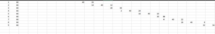 mgt , такая разбивка часов конечно вряд ли будет, потому что часы распределяет равномерно в нашем случае было бы так (скриншот 1) 150 часов, из них 6 аттестацией. И тогда распределение было бы таким (скриншот 2) а если, например, как хотите вы, то будет так (скриншот 3) 150 часов, из них 6 аттестацией (например) почему, например ,не использовать тригер в виде числа 40 где нибудь первой строкой и по нему смотреть?