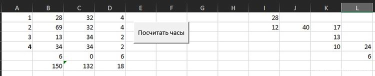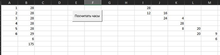 Сообщение Почему на первом скрине в колонке L в сумме 50? Я не совсем понял зачем количество предметов и почему на разных скринах разное количество часов в неделю, но если часы беруться из столбца B а норма часов в неделю из столбца C, то попробуйте запустить этот код. [vba]Код