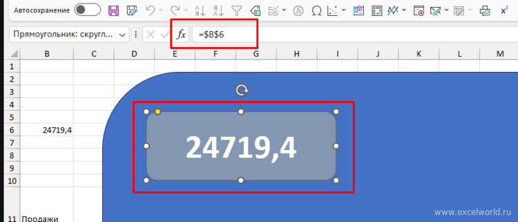 Доброе утро. Хорошо тогда я изменю задание. Я удалил данные из ячейки b6. Тогда задача будет формулироваться следующим образом. Как поставить формулу из сводной таблицы в фигуру. Может быть есть какие-то лайхфаки. Буду очень благодарен